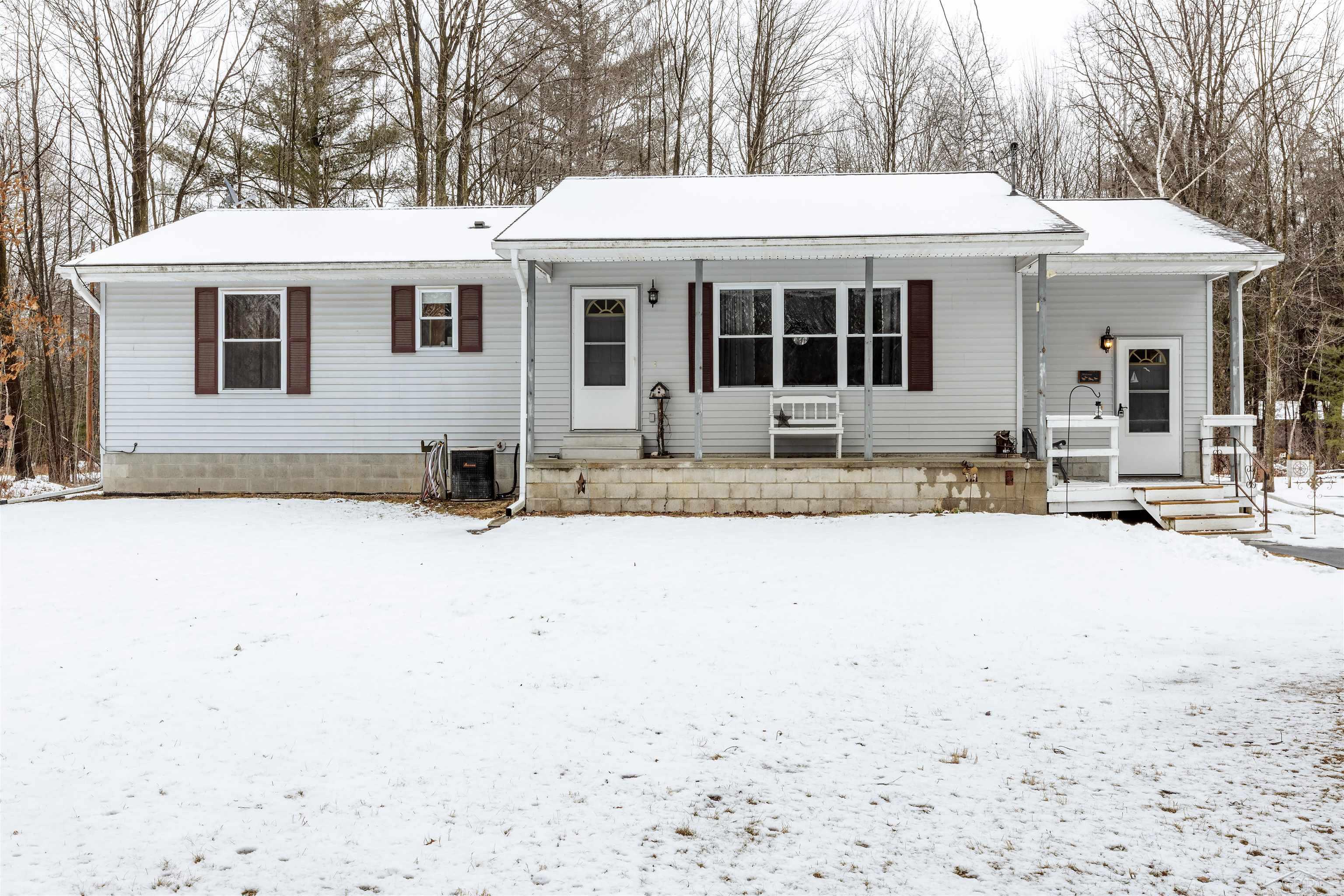 ALL OFFERS DUE BY 3/21/2026 AT 2PM. Own your own piece of serenity...this 3-bedroom, 2 bath home sits on 1.5 acres of land. Large kitchen with plenty of counter space and a pantry. Wood pellet stove in the dining area stays with buyer. Living room has plenty of space to sit and enjoy friends and family. All appliances stay including washer and dryer. The primary bedroom comes with a full bathroom. There is a whole house water filtration system. This ranch home was built in 2000, has 1472 SF up and the lower level has an additional 1232 SF. This space could include room to place a 4th bed as there is an egress window. Plenty of leftover space for storage, game area and work out area. The sump pump comes with a back-up. New roof in 2013, new sliding glass door in 2024. The entry is amazing and is entered off of the covered front porch. This area has space to decorate for the season, comes with a large coat closet, laundry room and storage over the stairway leading to the lower level. The circular drive is made from crushed asphalt. The 24x32 garage has plenty of space for 2 vehicles, lawnmower and off-road vehicles too. Central A/C. Spectrum for internet.