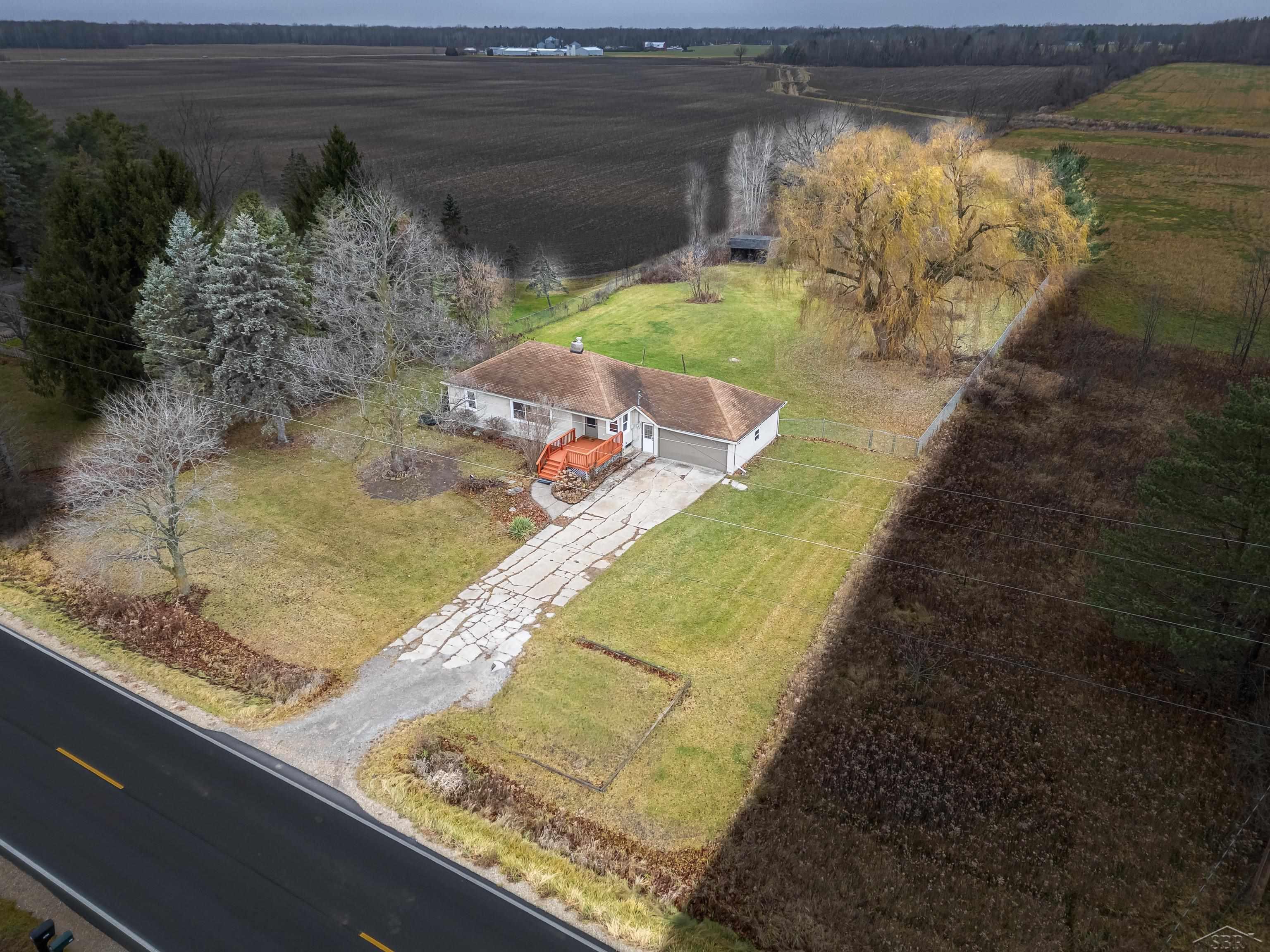 Delightful 3-bedroom, 1-bath ranch with a 2-car attached garage all sitting on a fully fenced one-acre lot in desirable Larkin Township. Enjoy an open concept living area highlighted by charming, coved ceilings and ceramic tile floors. The expansive living room boasts so much natural light and a gas fireplace to take the chill off of our wintery Michigan days. Each of the bedrooms are good size with hardwood floors and large closets. Expansive storage is to be found throughout the home, and all closets are cedar lined. On your way to the full basement offering excellent storage or room to expand, don't miss all of the additional closets in the entryway and a splendid little reading nook. Conveniently located near Midland shopping and amenities, with easy access to Bay County, Auburn, and Freeland—ideal for anyone seeking privacy, space and accessibility. A solid, cared-for home in a central location. Don't miss out! Call today for your private tour.